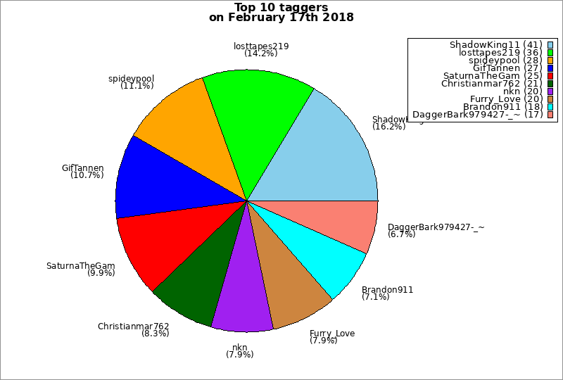 | Top 10 taggers on February 17th 2018 | ||
