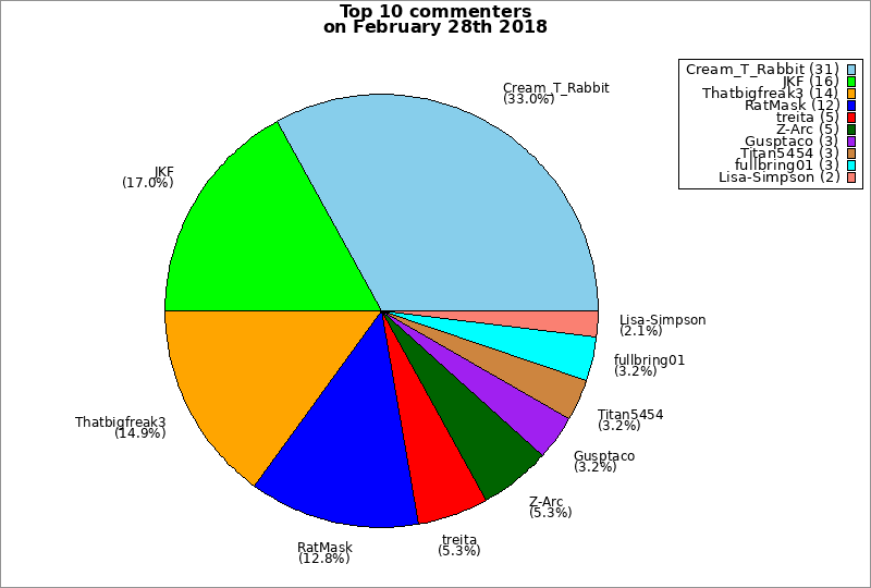 | Top 10 commenters on February 28th 2018 | ||