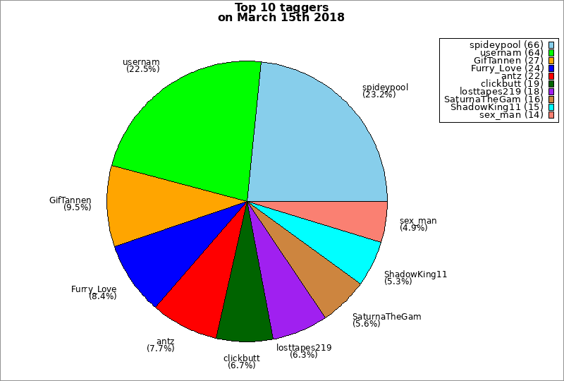 | Top 10 taggers on March 15th 2018 | ||