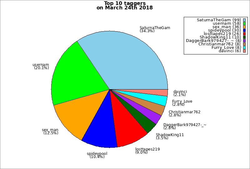 | Top 10 taggers on March 24th 2018 | ||