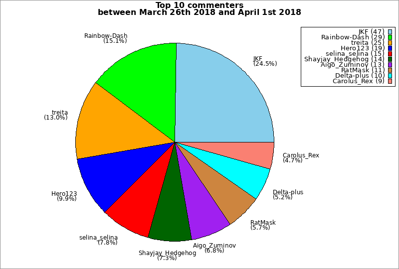 | Top 10 commenters between March 26th 2018 and April 1st 2018 | ||