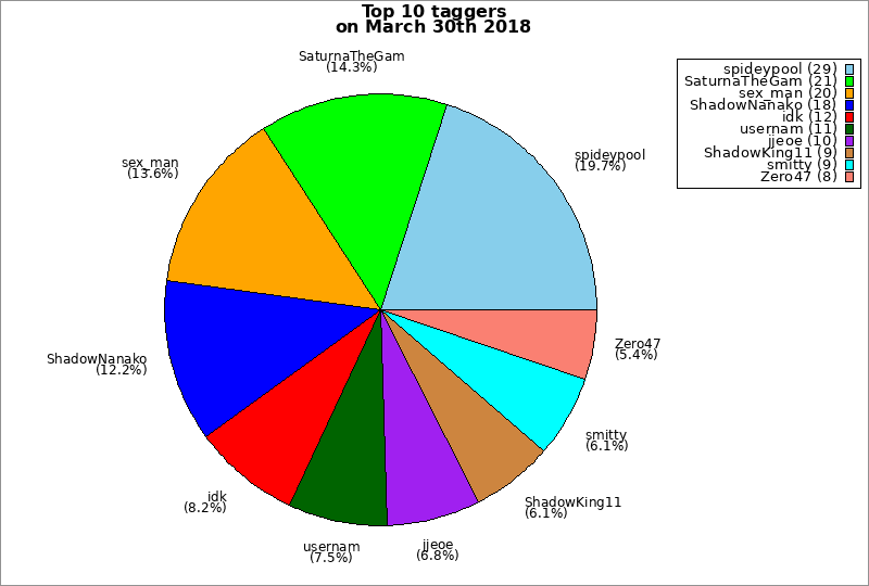 | Top 10 taggers on March 30th 2018 | ||