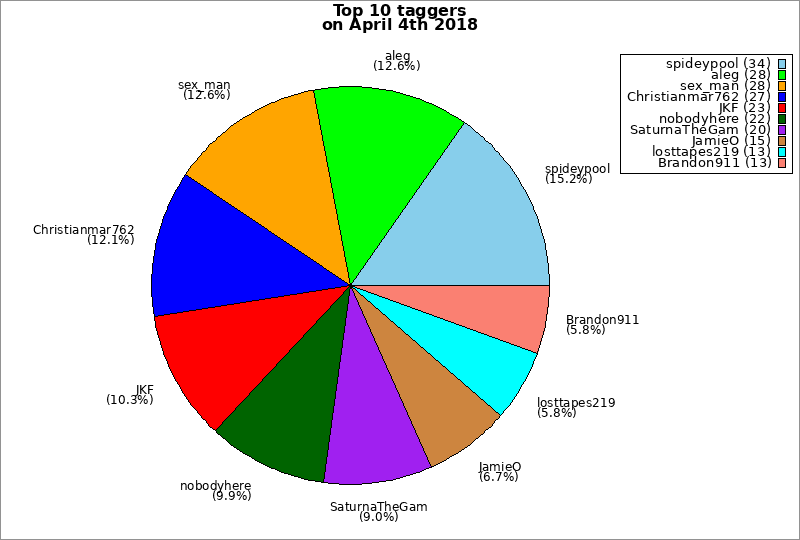| Top 10 taggers on April 4th 2018 | ||