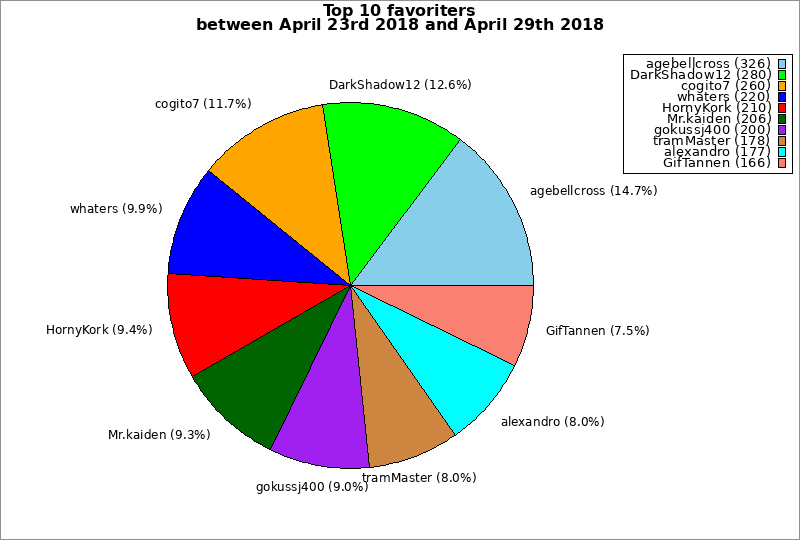 | Top 10 favoriters between April 23rd 2018 and April 29th 2018 | ||