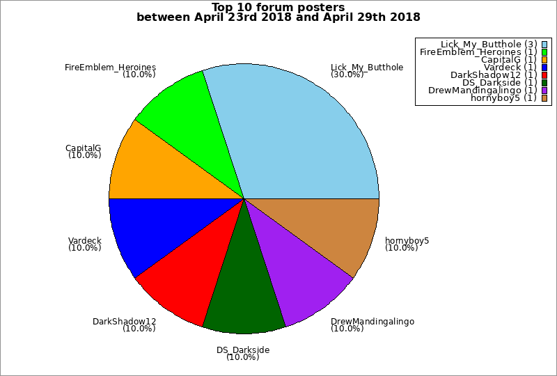 | Top 10 forum posters between April 23rd 2018 and April 29th 2018 | ||