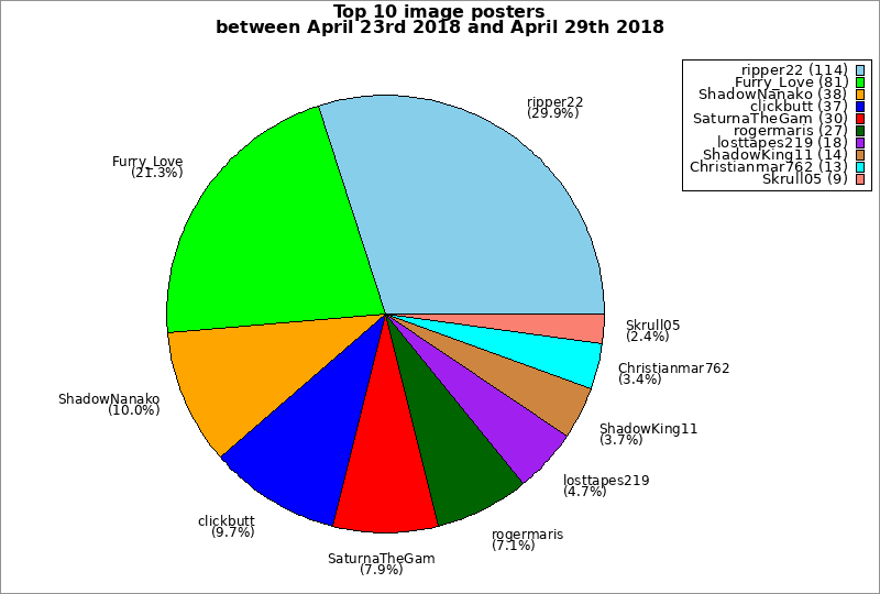 | Top 10 image posters between April 23rd 2018 and April 29th 2018 | ||
