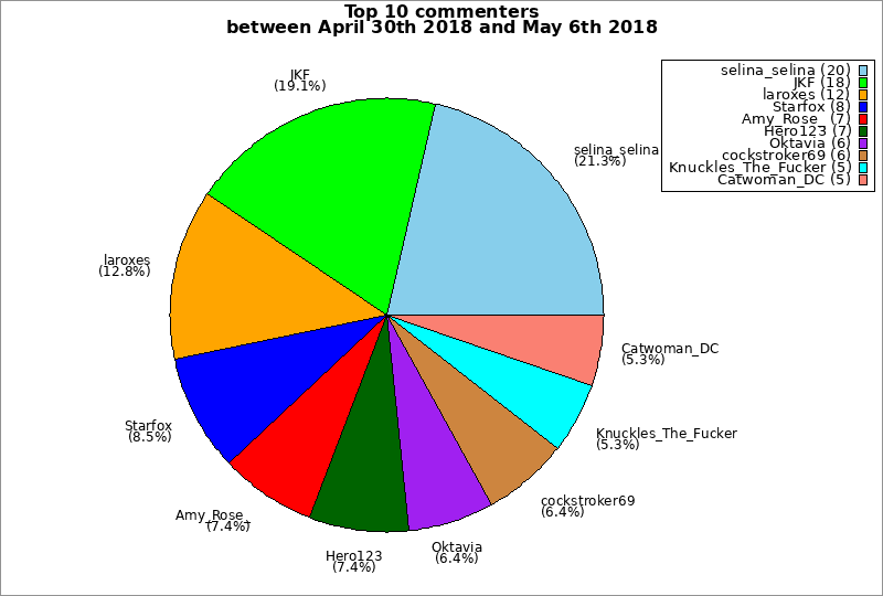 | Top 10 commenters between April 30th 2018 and May 6th 2018 | ||