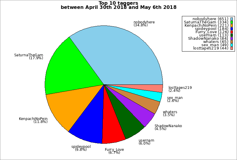 | Top 10 taggers between April 30th 2018 and May 6th 2018 | ||