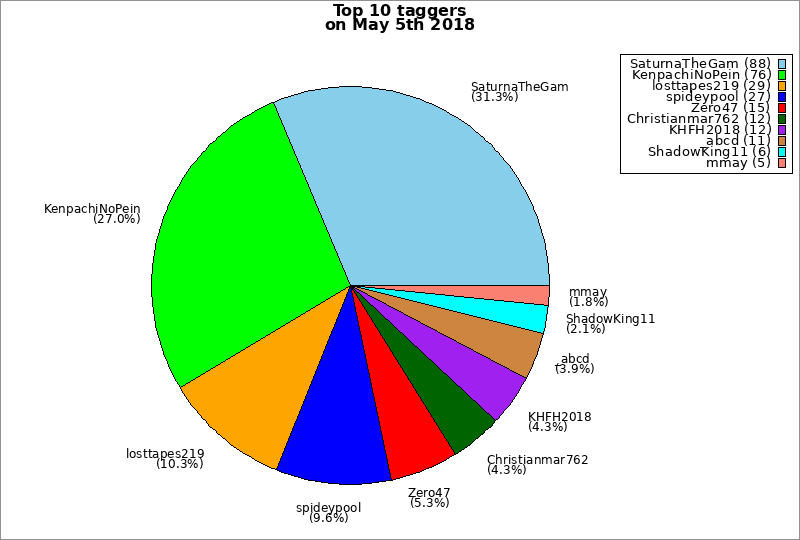 | Top 10 taggers on May 5th 2018 | ||