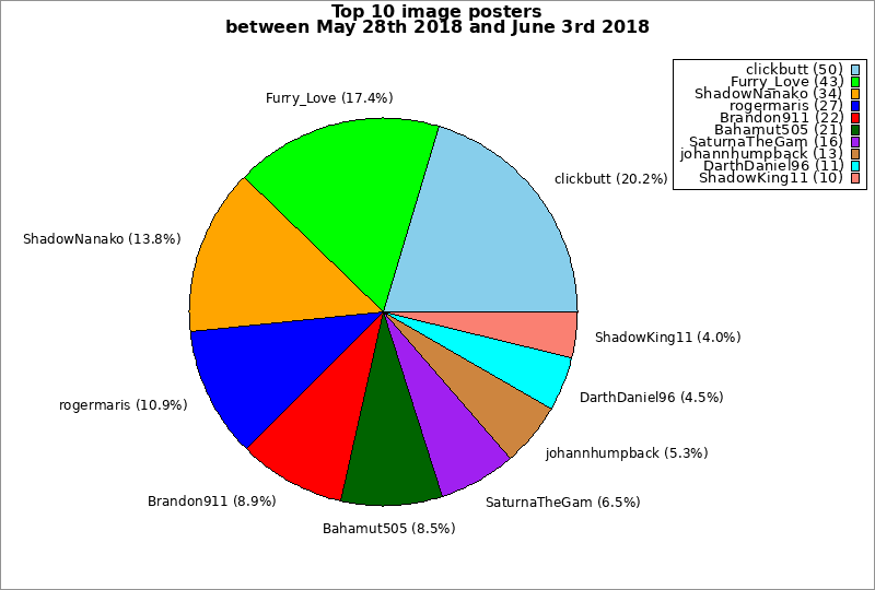 | Top 10 image posters between May 28th 2018 and June 3rd 2018 | ||