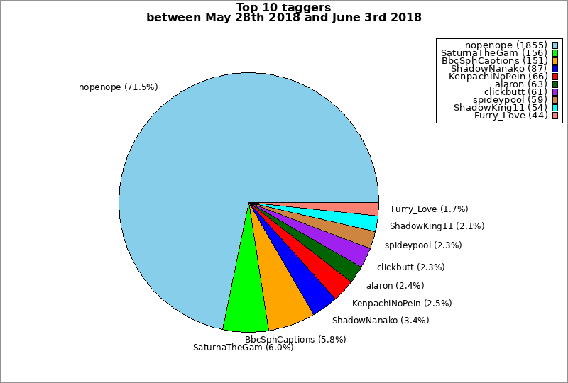 | Top 10 taggers between May 28th 2018 and June 3rd 2018 | ||