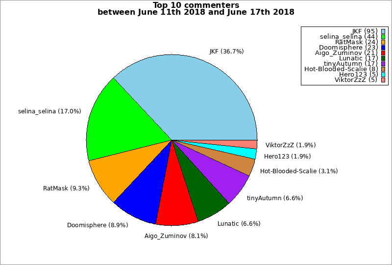 | Top 10 commenters between June 11th 2018 and June 17th 2018 | ||