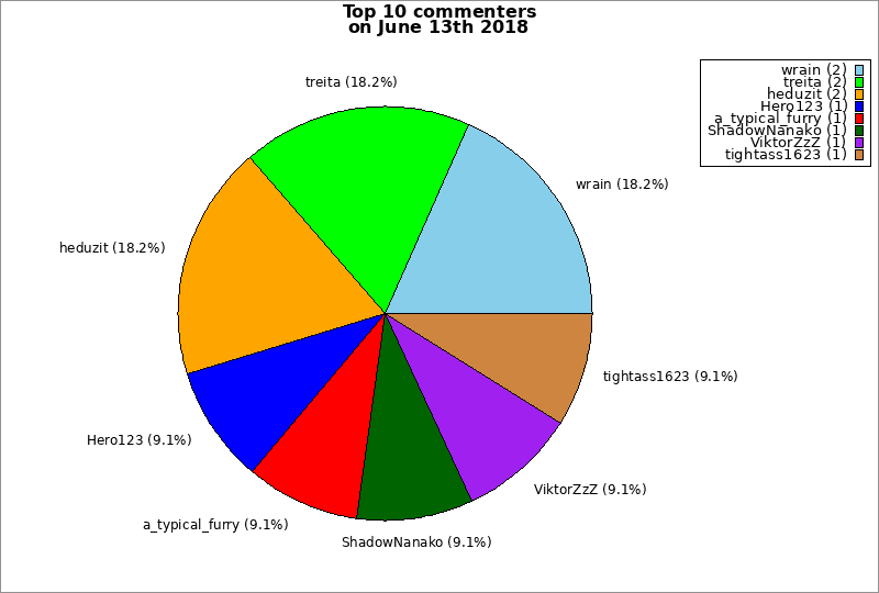 | Top 10 commenters on June 13th 2018 | ||