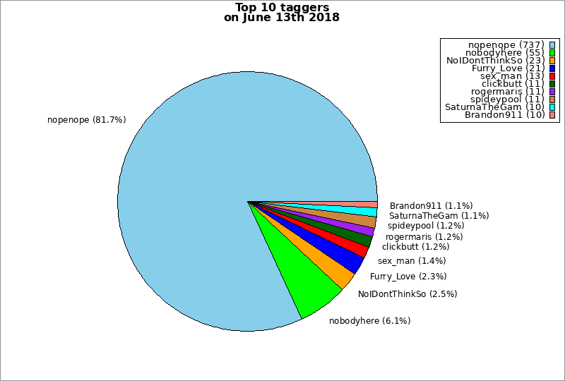 | Top 10 taggers on June 13th 2018 | ||