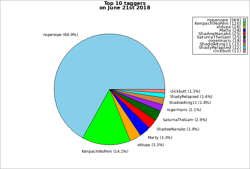 | Top 10 taggers on June 21st 2018 | ||