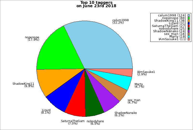 | Top 10 taggers on June 23rd 2018 | ||