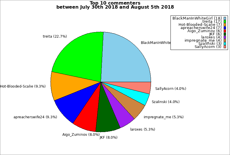 | Top 10 commenters between July 30th 2018 and August 5th 2018 | ||