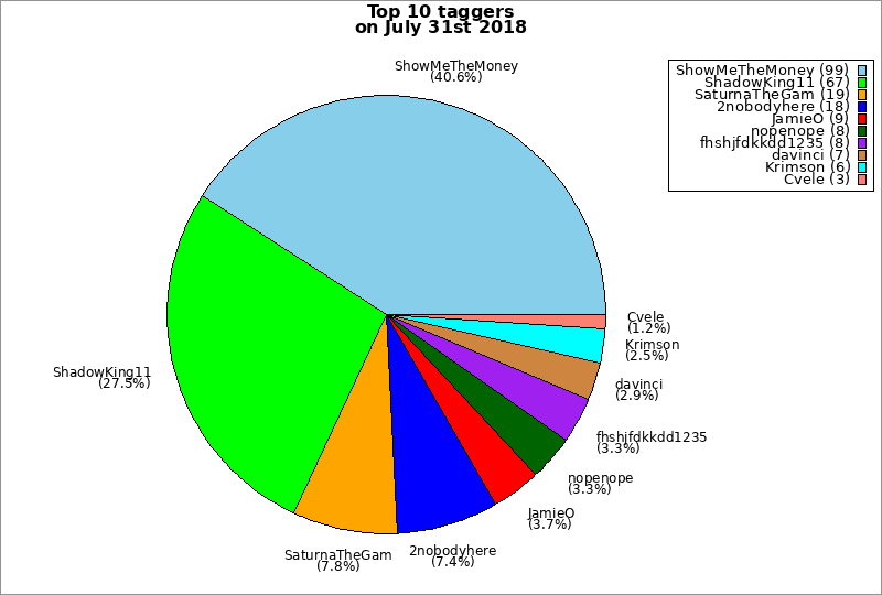 | Top 10 taggers on July 31st 2018 | ||
