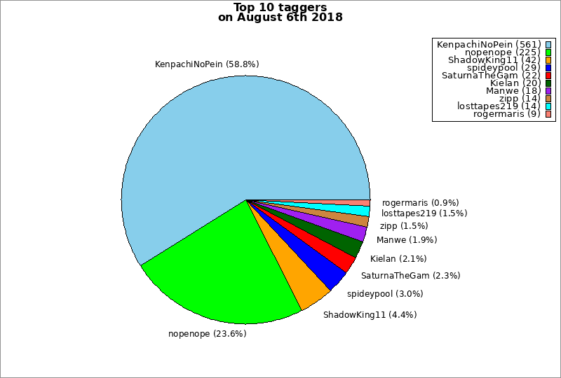 | Top 10 taggers on August 6th 2018 | ||