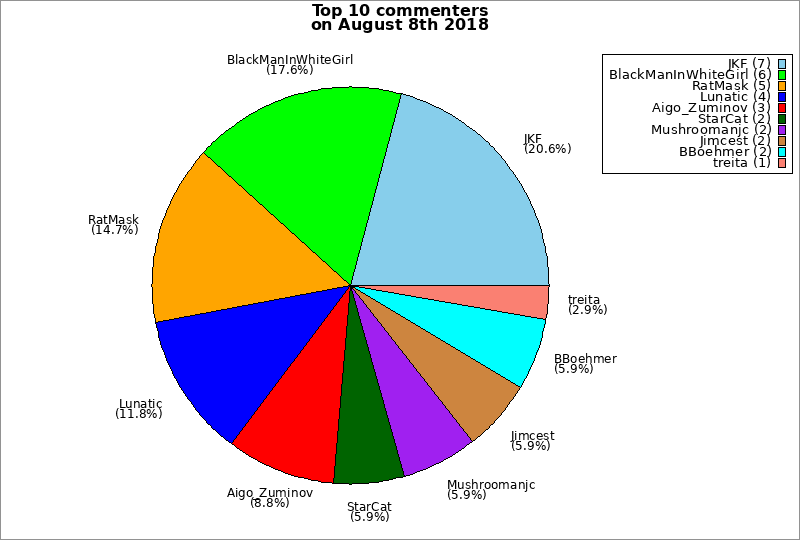 | Top 10 commenters on August 8th 2018 | ||