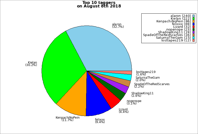 | Top 10 taggers on August 8th 2018 | ||