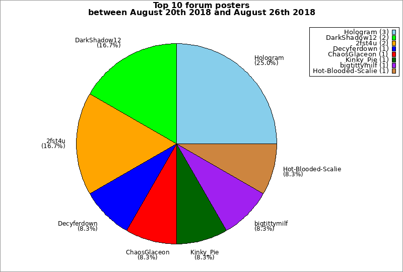 | Top 10 forum posters between August 20th 2018 and August 26th 2018 | ||