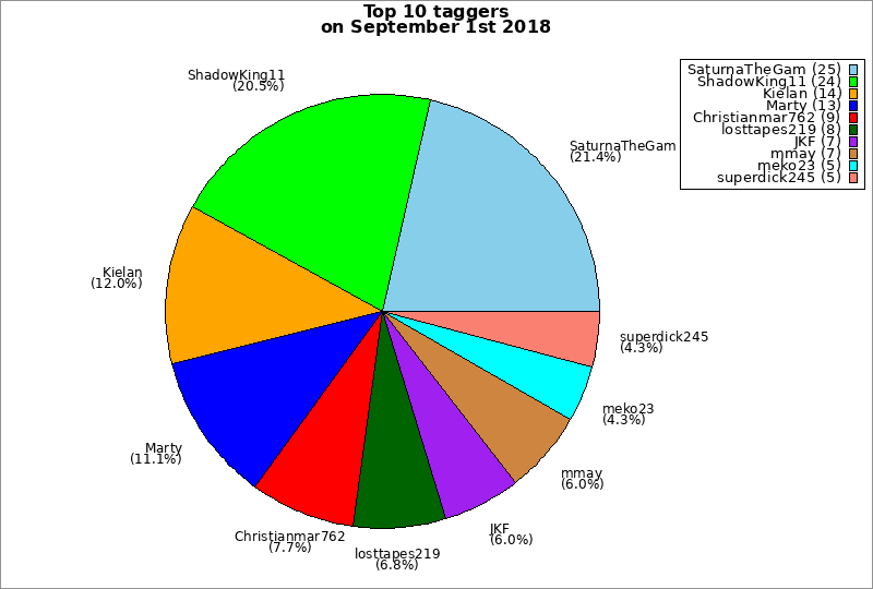 | Top 10 taggers on September 1st 2018 | ||