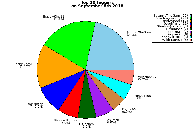 | Top 10 taggers on September 8th 2018 | ||