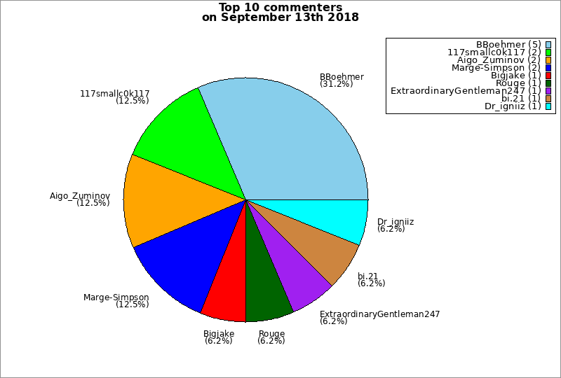 | Top 10 commenters on September 13th 2018 | ||