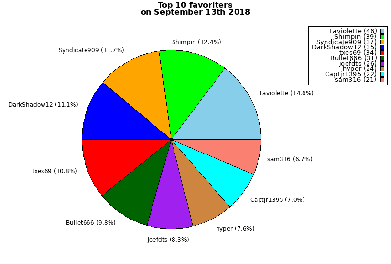 | Top 10 favoriters on September 13th 2018 | ||