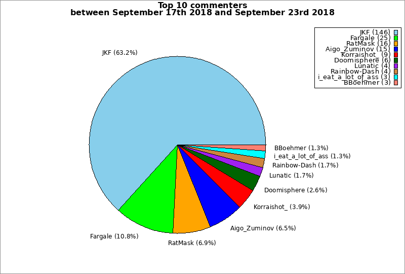 | Top 10 commenters between September 17th 2018 and September 23rd 2018 | ||