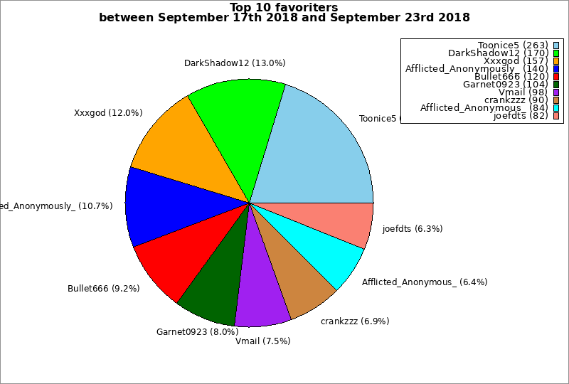 | Top 10 favoriters between September 17th 2018 and September 23rd 2018 | ||