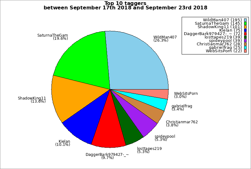 | Top 10 taggers between September 17th 2018 and September 23rd 2018 | ||