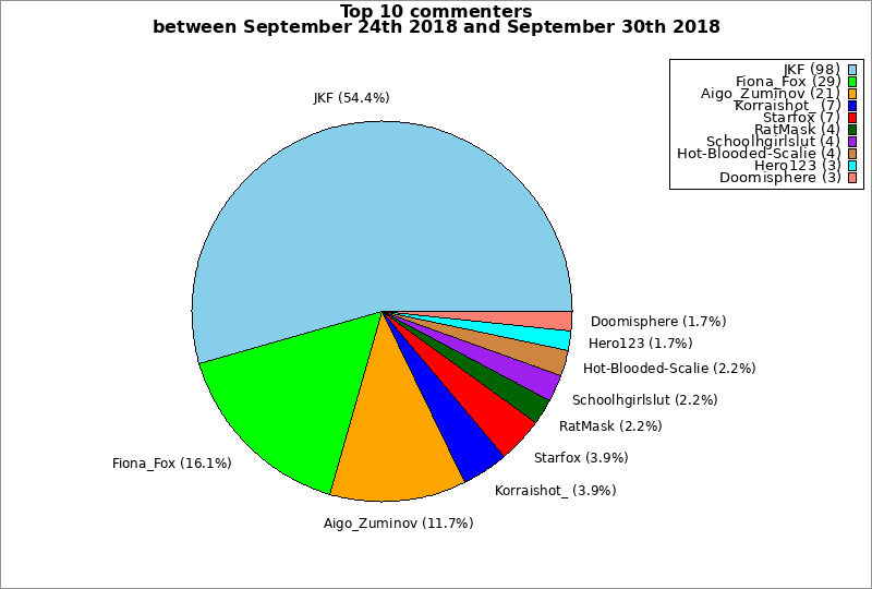 | Top 10 commenters between September 24th 2018 and September 30th 2018 | ||