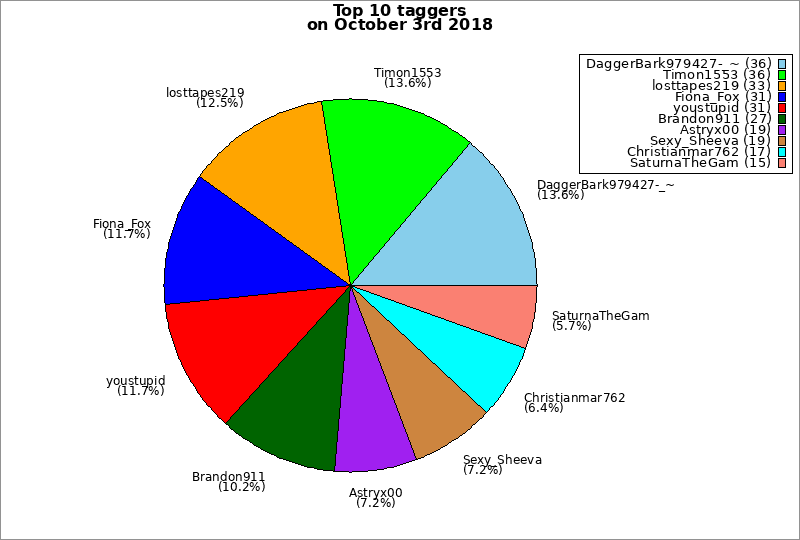 | Top 10 taggers on October 3rd 2018 | ||