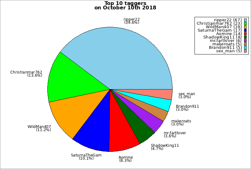 | Top 10 taggers on October 10th 2018 | ||
