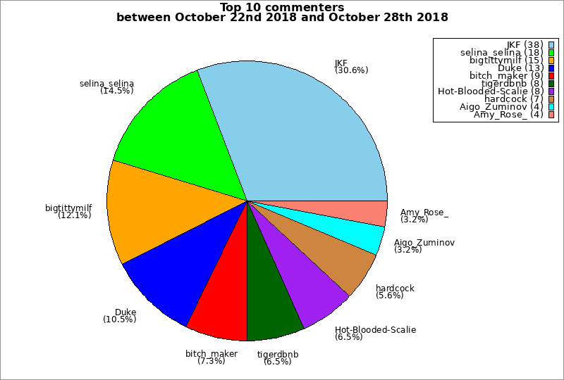 | Top 10 commenters between October 22nd 2018 and October 28th 2018 | ||