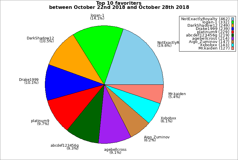 | Top 10 favoriters between October 22nd 2018 and October 28th 2018 | ||
