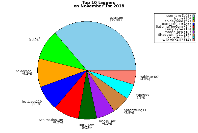 | Top 10 taggers on November 1st 2018 | ||