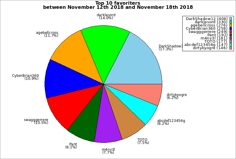 | Top 10 favoriters between November 12th 2018 and November 18th 2018 | ||