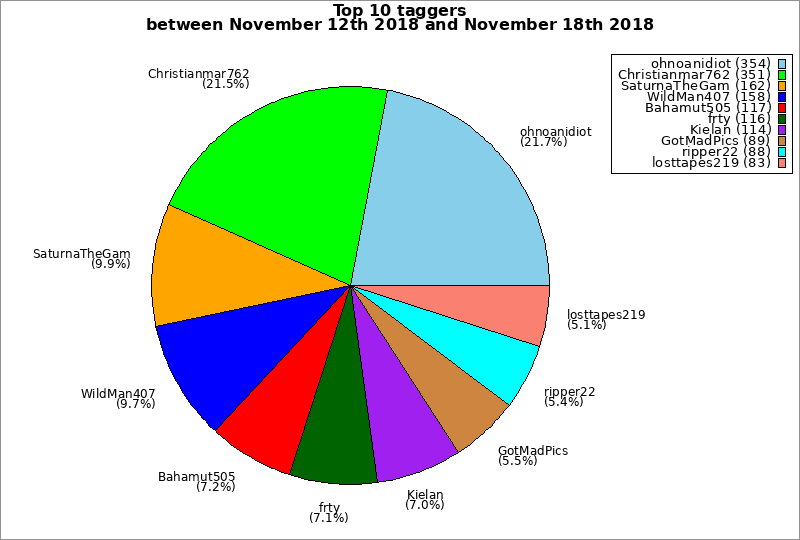 | Top 10 taggers between November 12th 2018 and November 18th 2018 | ||