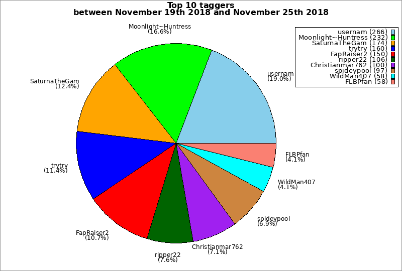 | Top 10 taggers between November 19th 2018 and November 25th 2018 | ||