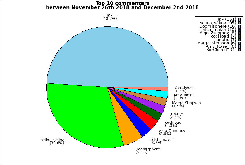 | Top 10 commenters between November 26th 2018 and December 2nd 2018 | ||