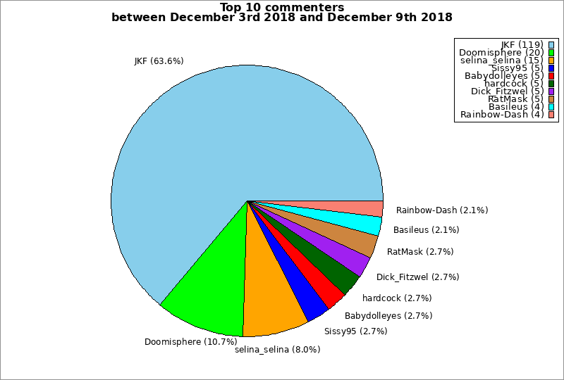 | Top 10 commenters between December 3rd 2018 and December 9th 2018 | ||