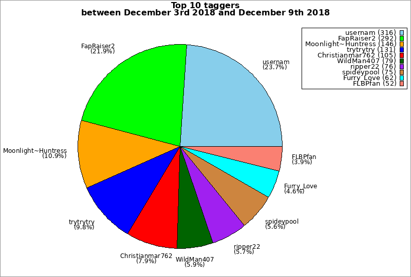 | Top 10 taggers between December 3rd 2018 and December 9th 2018 | ||