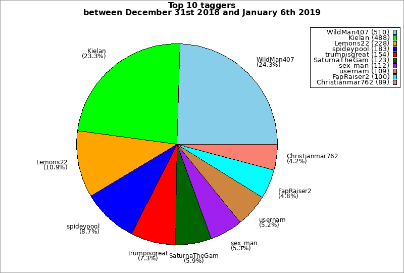 | Top 10 taggers between December 31st 2018 and January 6th 2019 | ||