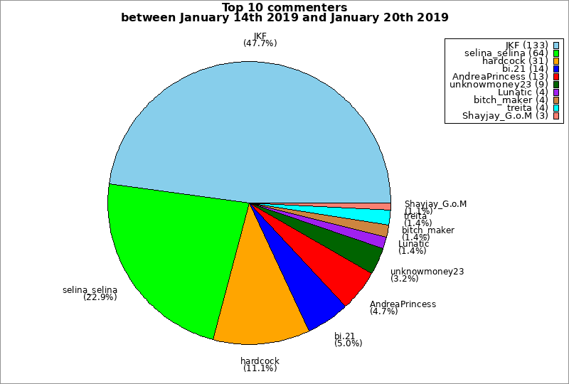 | Top 10 commenters between January 14th 2019 and January 20th 2019 | ||