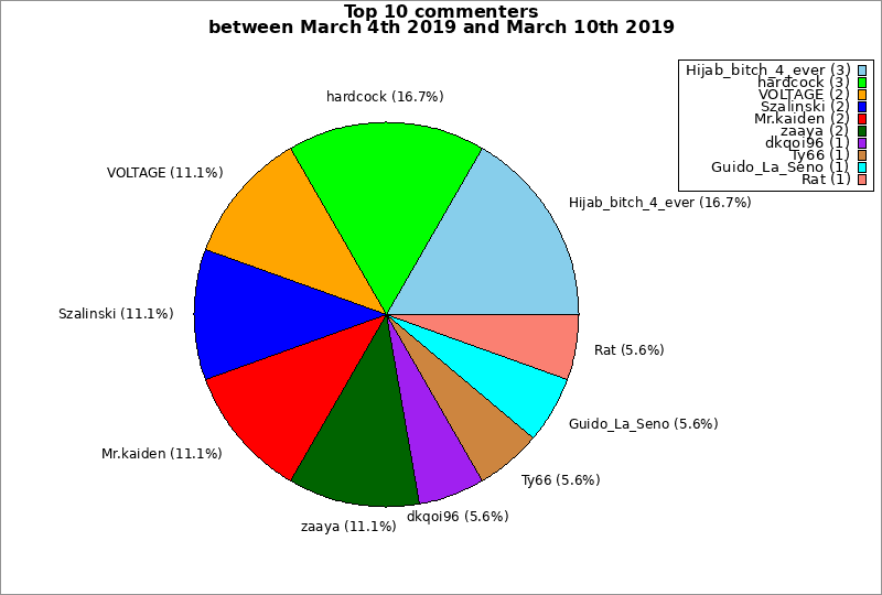 | Top 10 commenters between March 4th 2019 and March 10th 2019 | ||