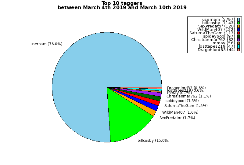 | Top 10 taggers between March 4th 2019 and March 10th 2019 | ||