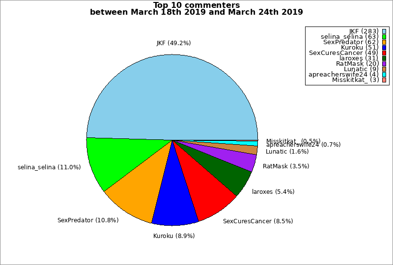 | Top 10 commenters between March 18th 2019 and March 24th 2019 | ||